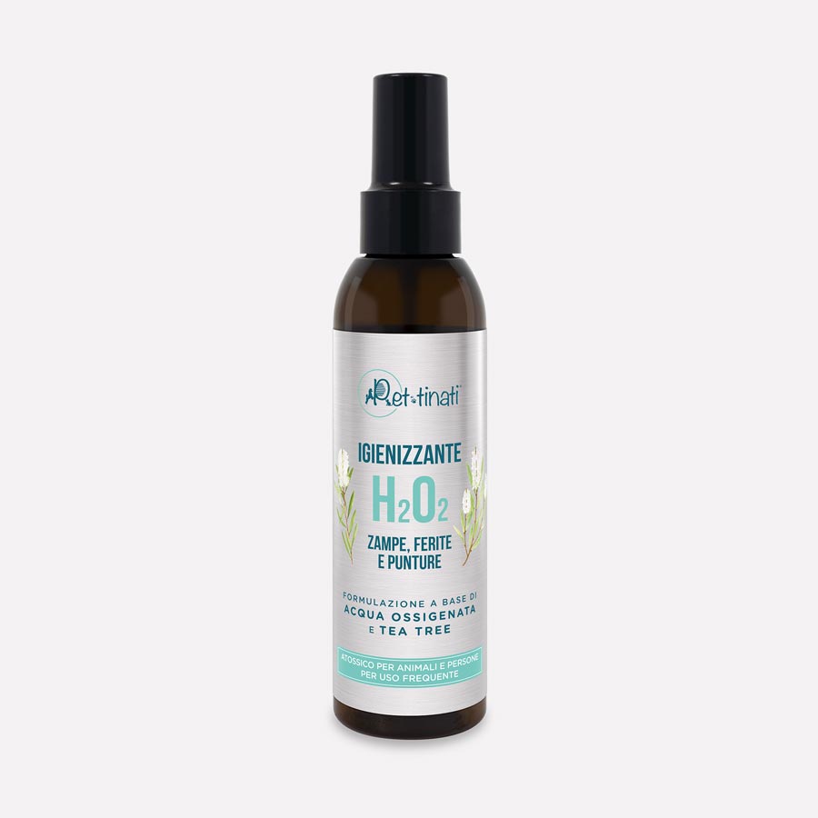 The main component of this spray is oxygen, which is present at a lower concentration than hydrogen peroxide. In addition to helping cleanse the skin, it has the specific ability to inhibit numerous viruses thanks to hydrogen peroxide, present in the Sanitising Paws Spray, which can inactivate them in one minute.